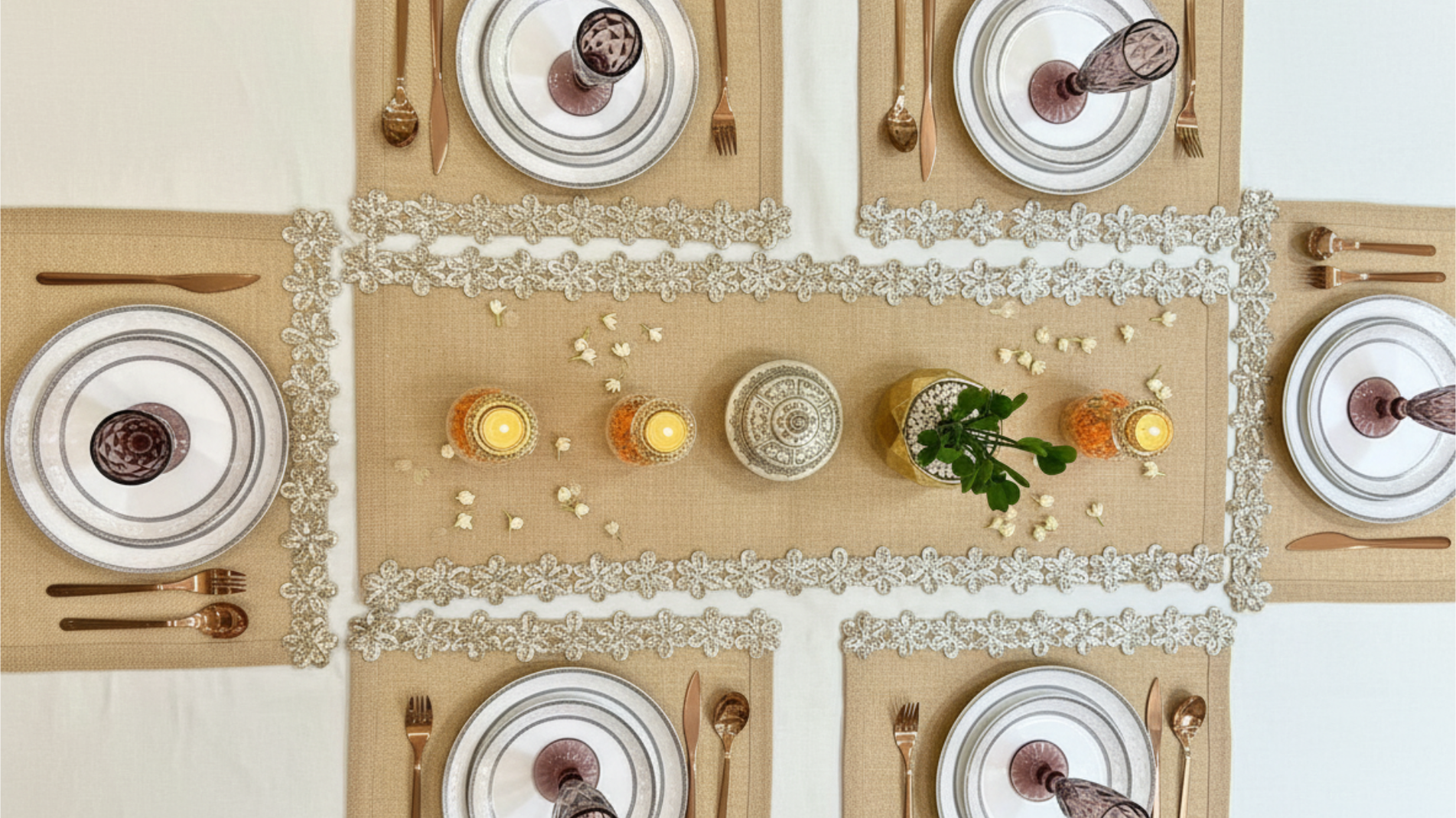 Grace woven into every inch Ivory Royale Lace Mat brings timeless elegance to your table with its soft off-white satin base, finished with intricately crafted lace edges. Designed to elevate everyday dining and special occasions alike, this mat combines a luxurious sheen with delicate detailing—creating a warm, graceful, and sophisticated...