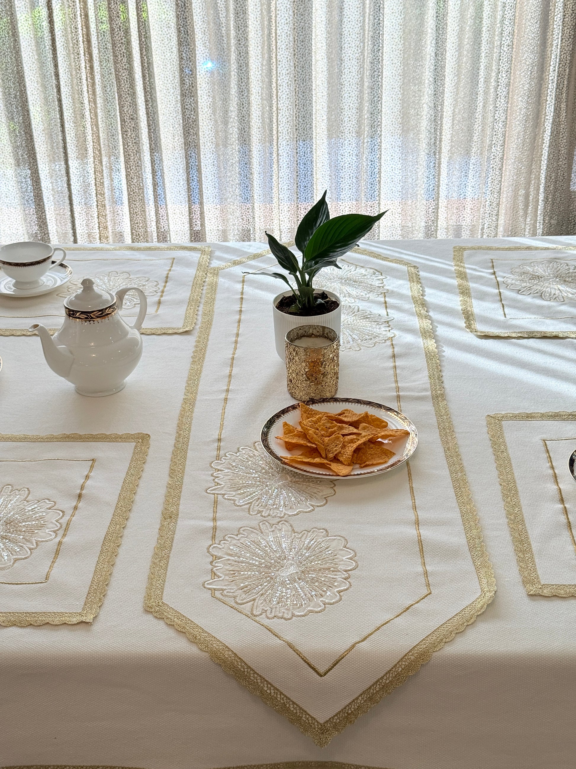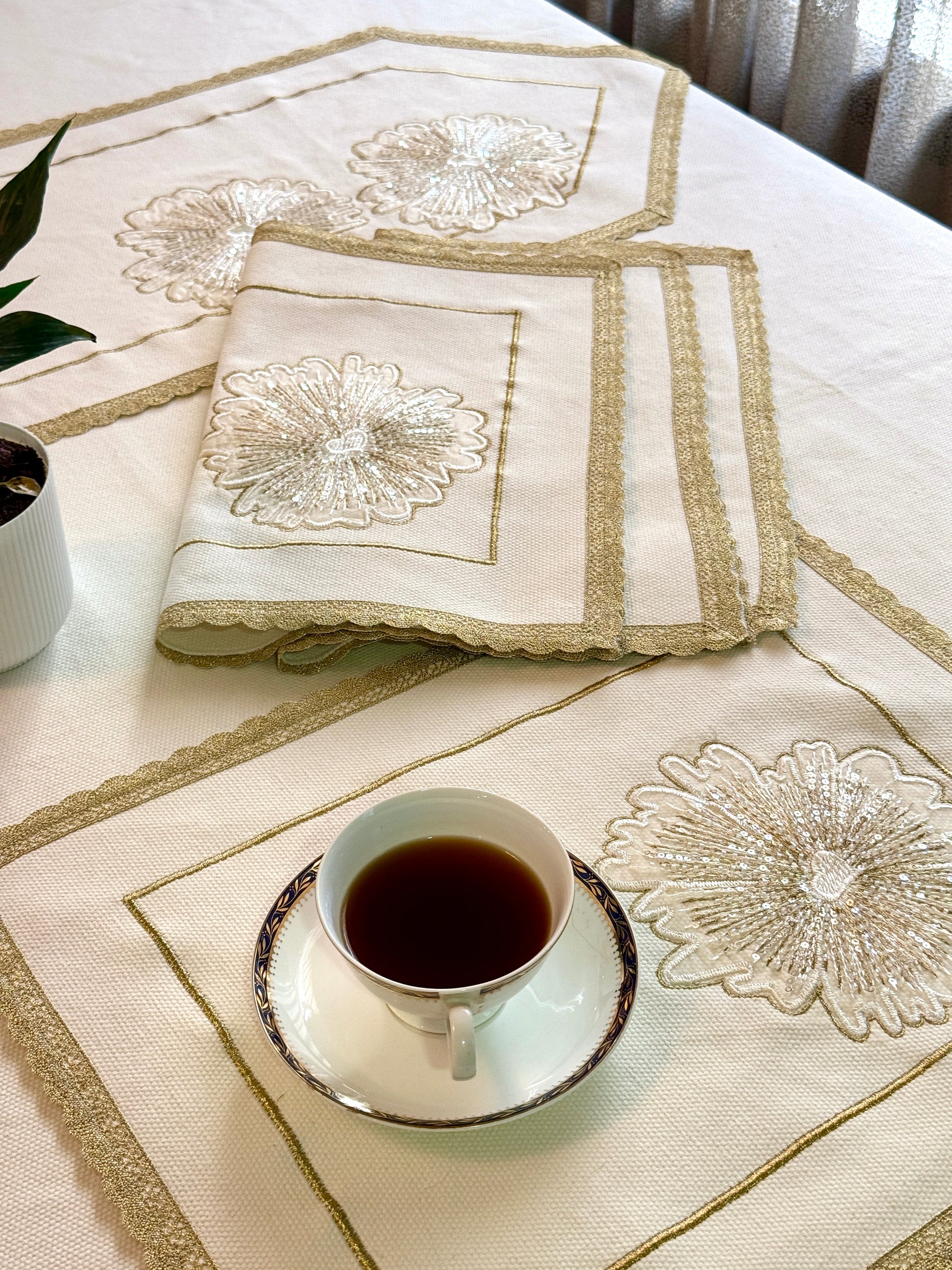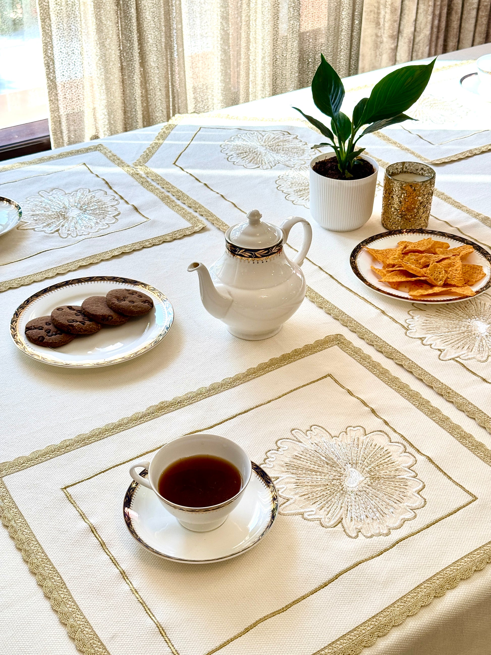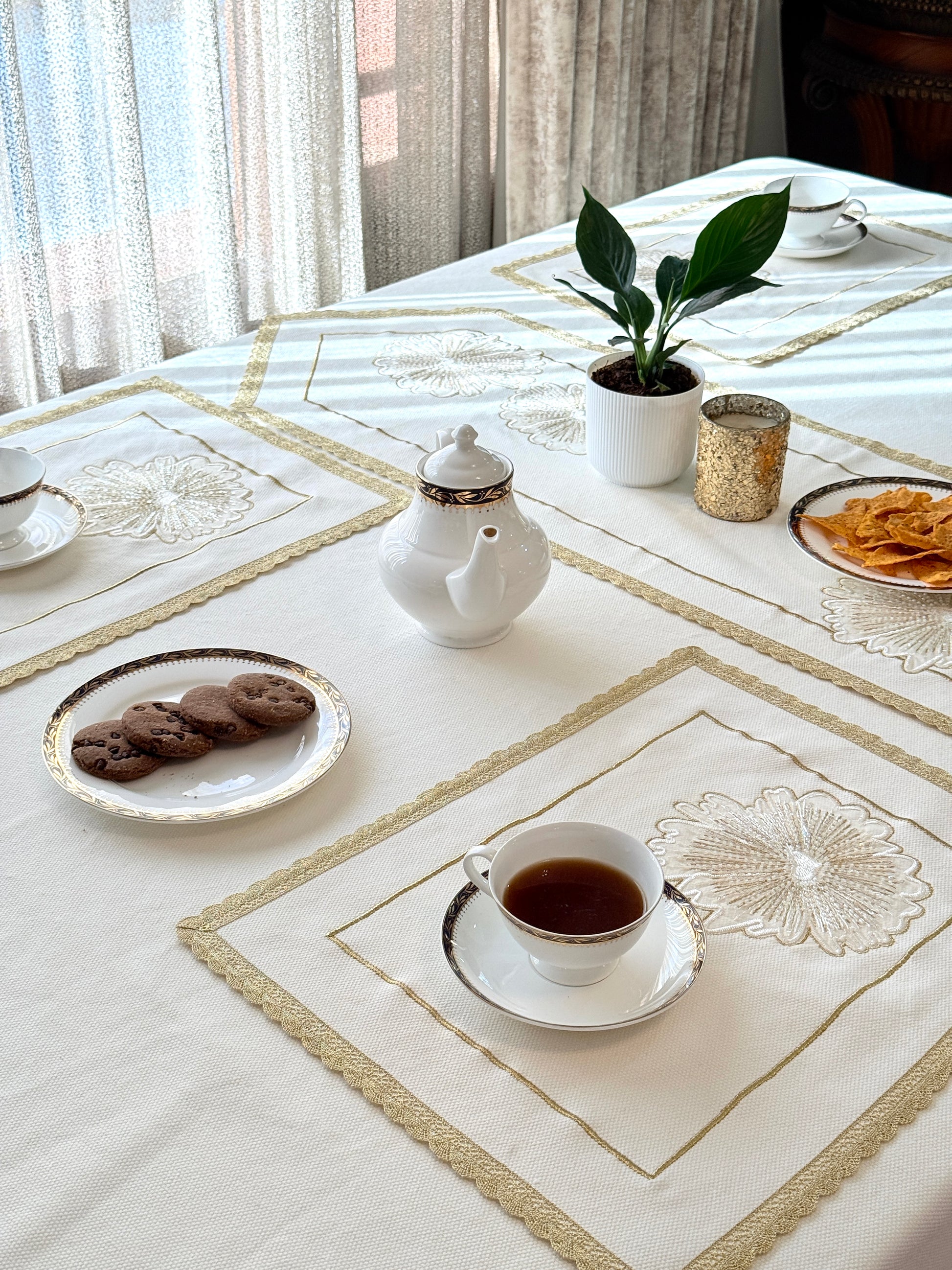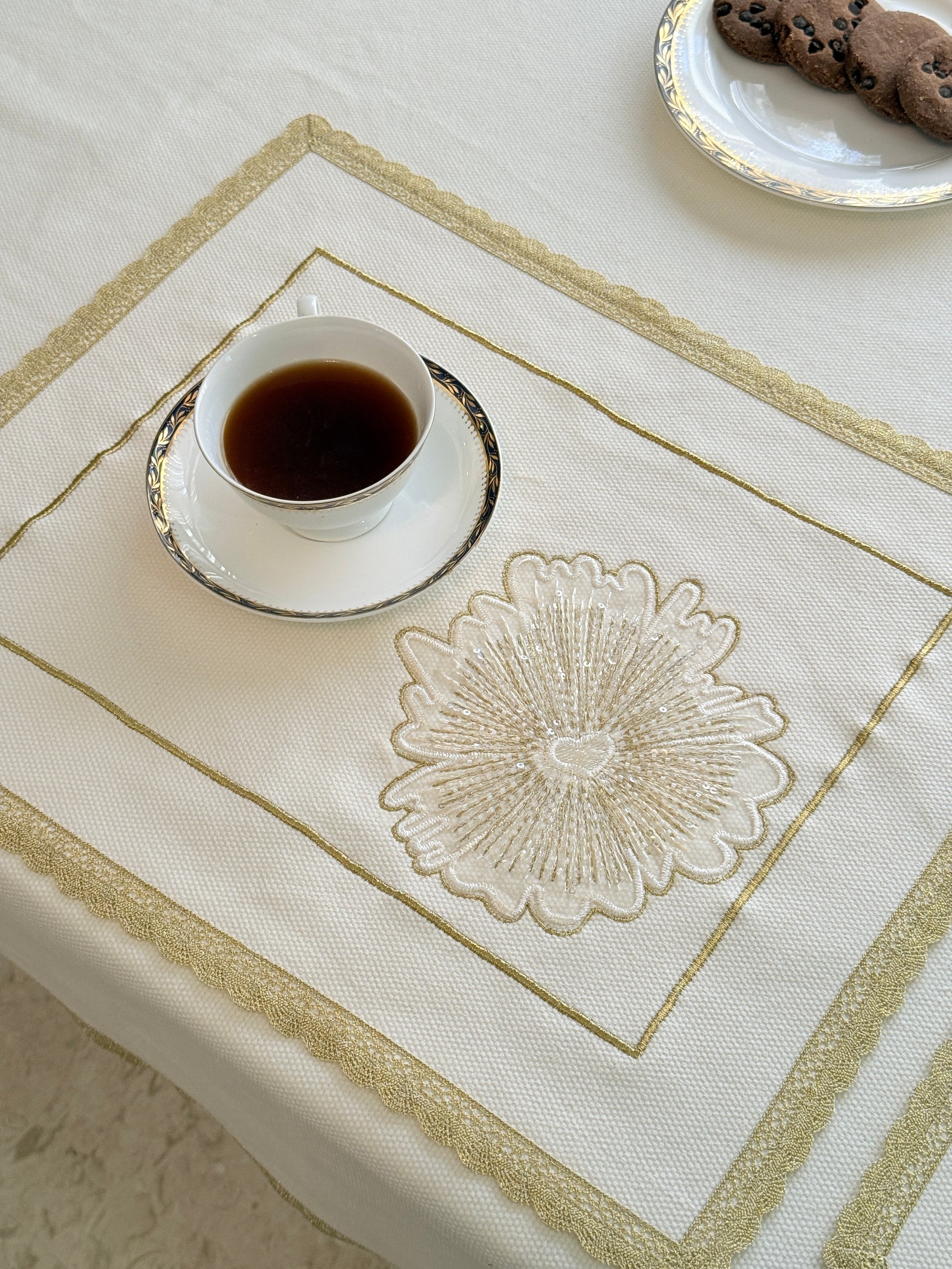 Give your table the upgrade it deserves with Gold Kiss Blossom. Designed in an elegant textured finish and highlighted with a sparkling embellished flower, this mat instantly elevates any setting. The classic white-and-gold palette matches effortlessly with crockery and décor, making it an easy choice for customers who want a luxurious yet versatile piece.