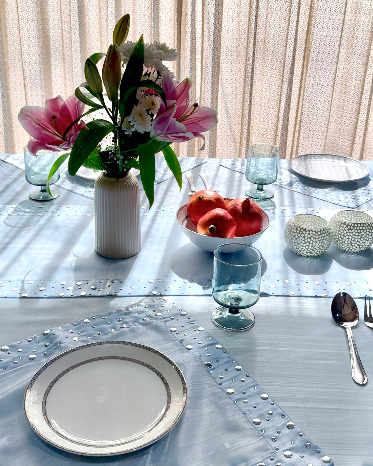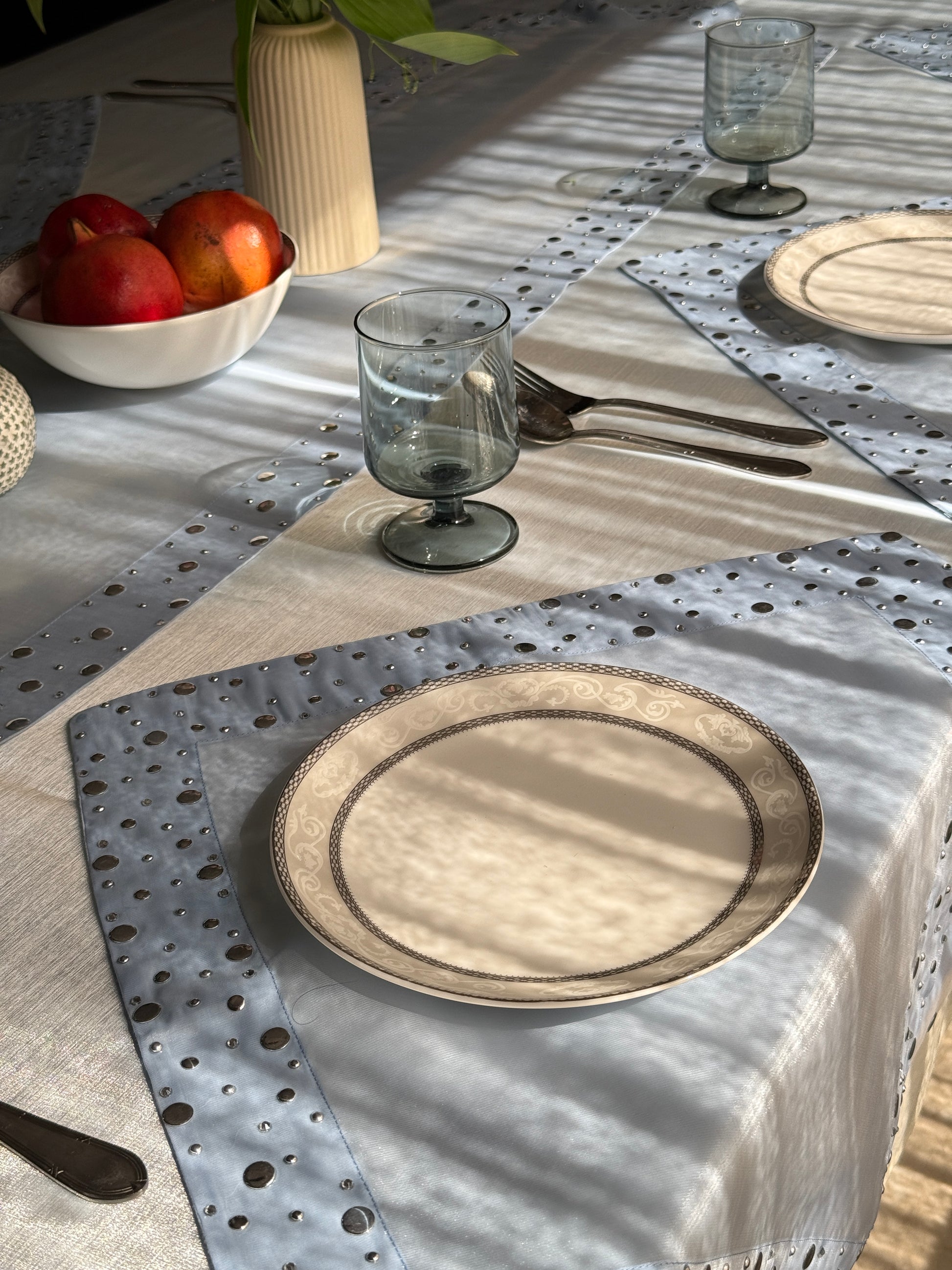 Crafted from fine organza, this set shimmers with a soft metallic glow that feels effortlessly regal. Its translucent fabric and radiant finish lend an exclusive charm, turning your table into a vision of sophistication. Perfect for celebrations, it's where subtle luxury meets timeless beauty.