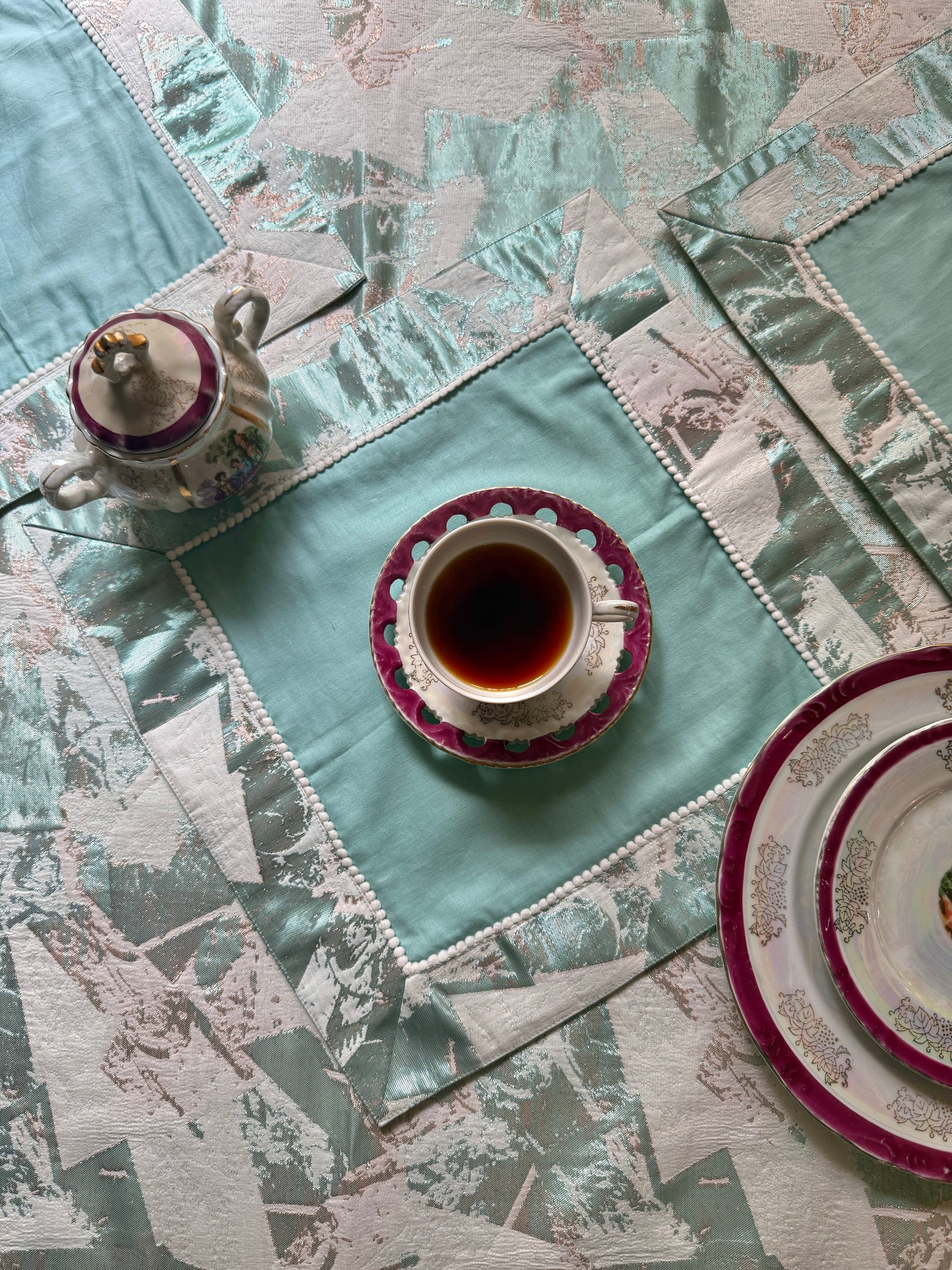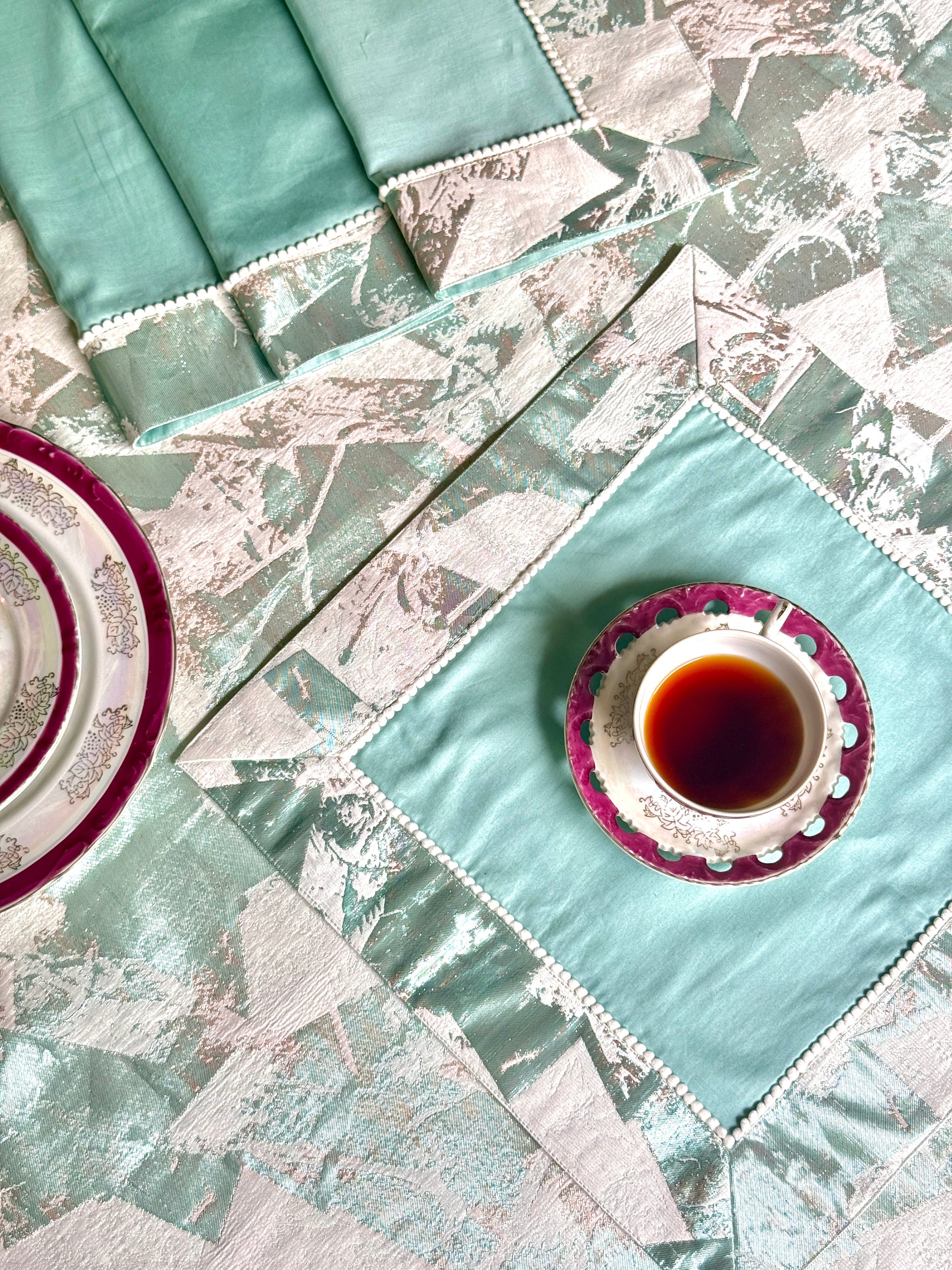These Mint blue table mats, with their abstract print, bring freshness and warmth to your table. Ideal for breakfasts, high - tea, or cozy evenings, they blend fun with elegance to make every meal feel special